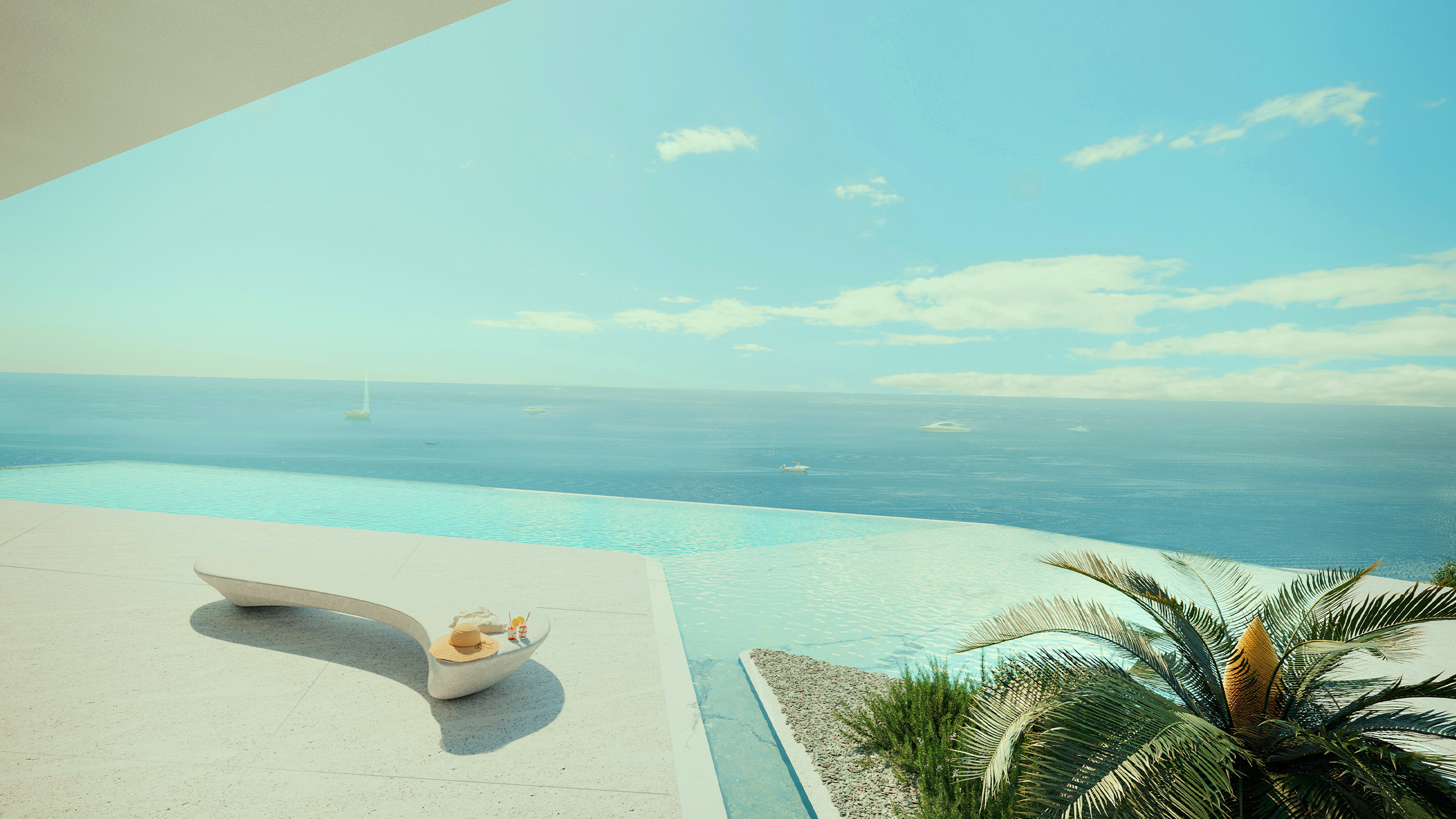We present this elegant design on a generous 3,553 m² plot, boasting breathtaking panoramic southwest views across Africa and the Mediterranean with a 180º opening.