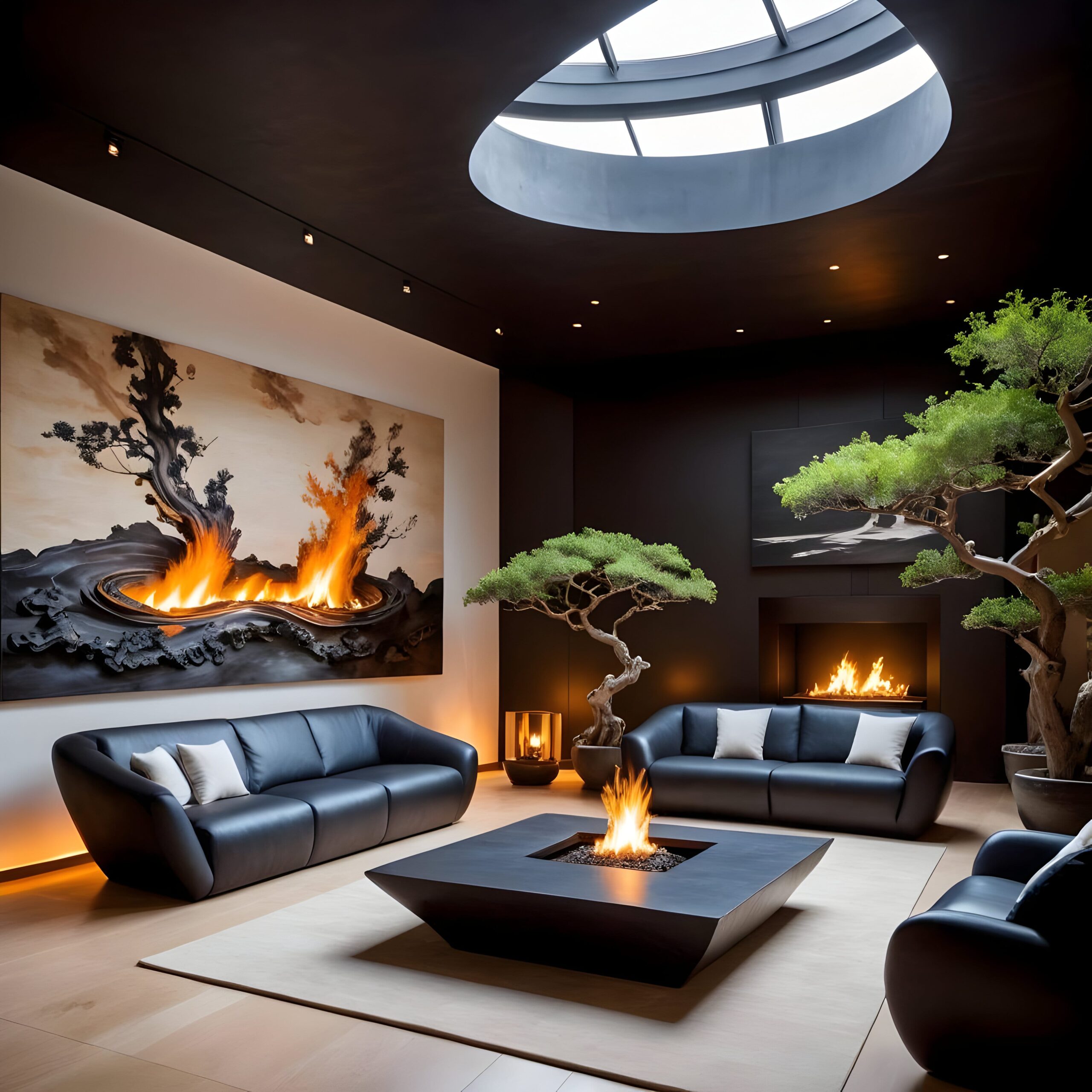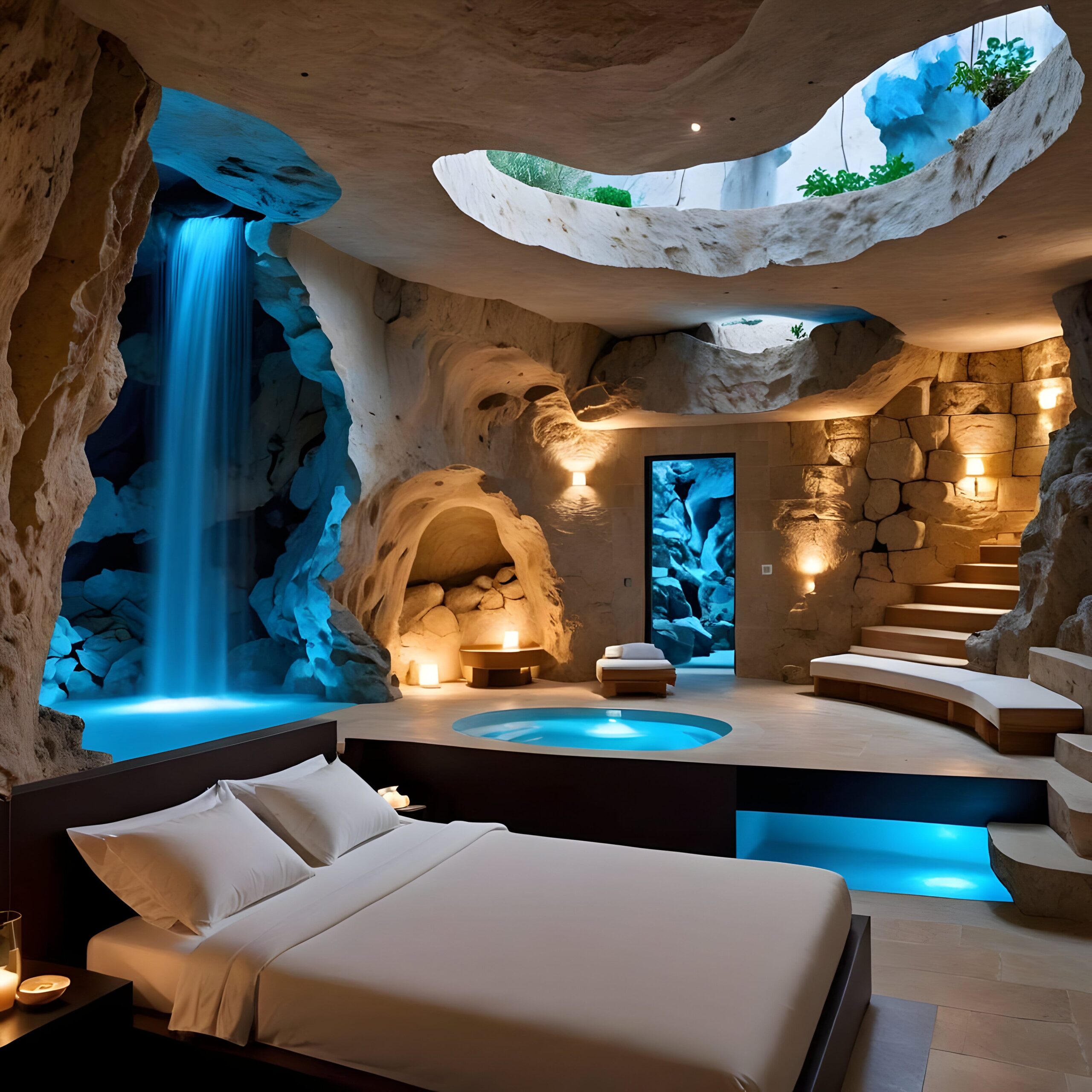 Conceptually divided into realms that reflect the duality of its inspiration, the villa features an underground spa and a contemporary cave area that serve as sanctuaries for renewal and reflection. The design aesthetic merges natural elements, with cascading waterfalls symbolizing tranquility and the fiery essence of power and determination, interwoven with light wood accents from Asian regions and polished white marble from Málaga.
