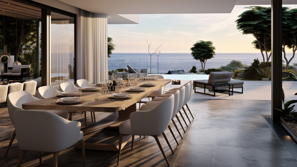 From ALL-369, specialists in creating unique turnkey projects, in collaboration with our architects based in Spain and Dubai, we present this elegant design, enhanced with Artificial Intelligence. It combines two plots into one expansive 5,583 m² estate, offering breathtaking panoramic southwest views of the sea (180º) and the mountains of Morocco.